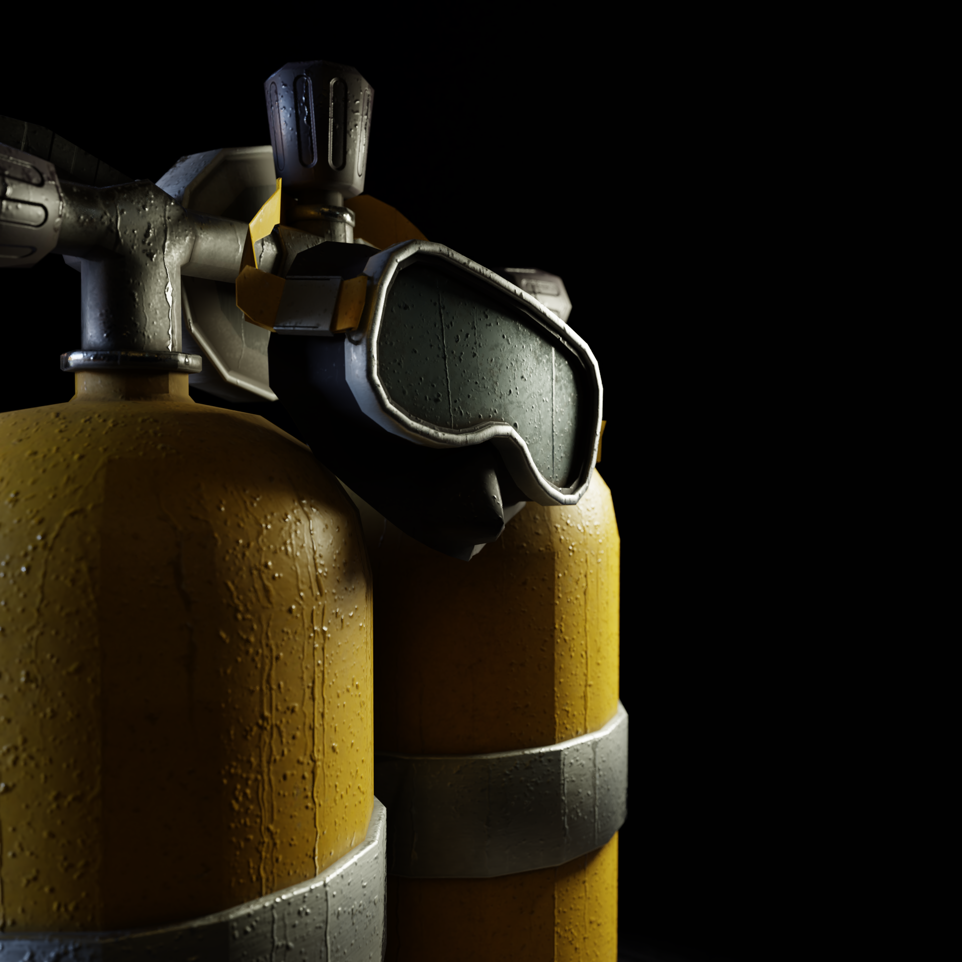 I chose an underwater adventure that would require scuba gear. Final model poly count comes to 9,964.