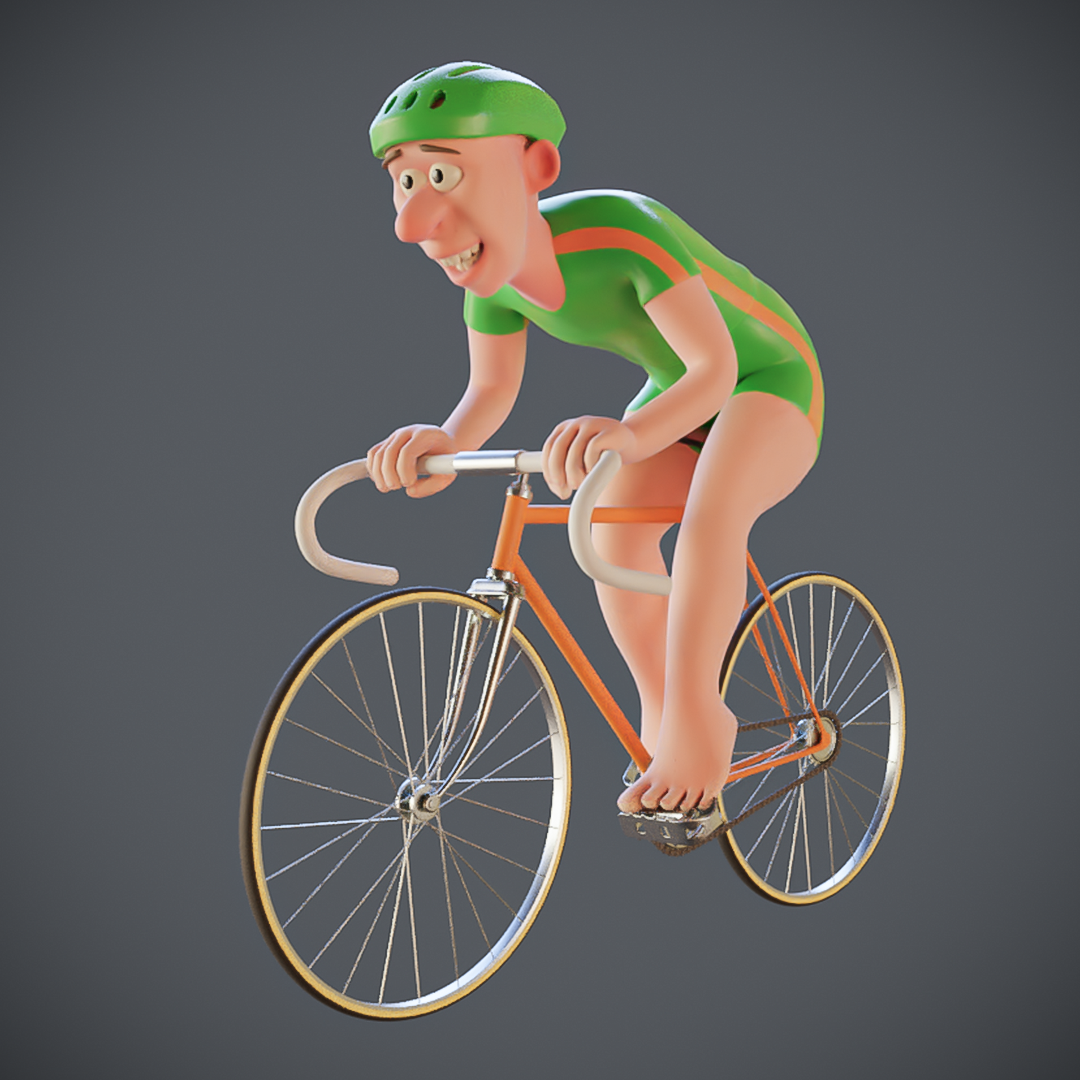 For the cyclist, I created a custom rig using IK constraints and drivers to link leg movement with pedal rotation, wheel turning, and chain motion. The setup ensured that all mechanical parts stayed synchronized, while still allowing for natural character posing. Although it took time to engineer, the system made animating the final shot far more efficient and enjoyable.